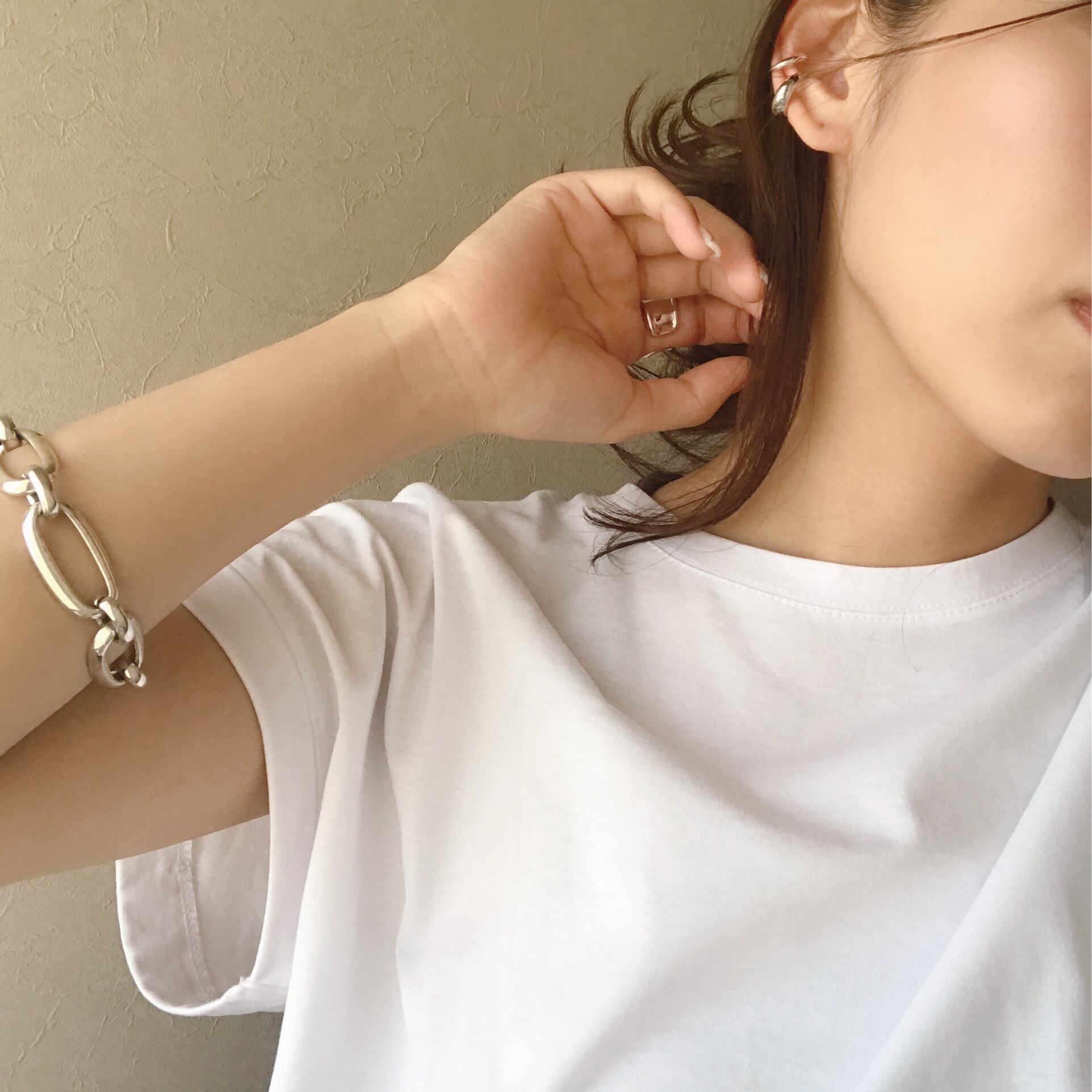 silverは汗や皮脂に反応して黒ずむ事があります。その場合はクロスなどで優しくお拭き取りください。付けたまま入浴や、水仕事などはおやめください。